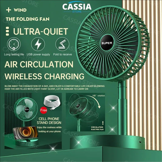 Desk Rechargeable fan portable USB charging mini 3-Speed Retractable Foldable Silent Electric Fan With phone stand Fast cooling down Strong Wind Electric Fan Household Outdoor Travel Student Dormitory essential Air circulation Cooling Fan
