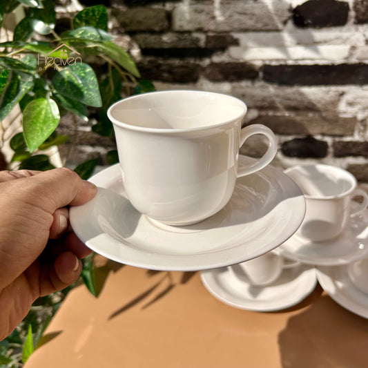 White Bone China Cup and Saucer Set of 6 – Weightless Perfection for Office and Restaurants