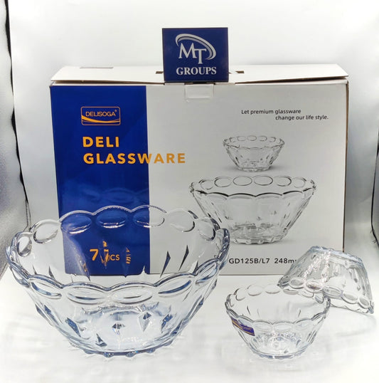 Delisoga® 7-Piece Glass Fruit Serving Set – Elegant Glassware for Fruit, Snacks, & Desserts