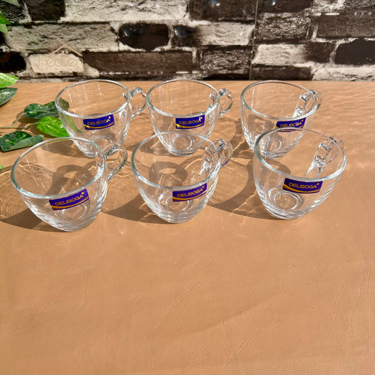 Delisoga® Transparent Clear Glass Cofee & Tea Mugs 240 ML Set of 6 Tempered ZB24E