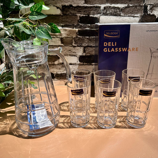 Delisoga® 7-Piece Long Glass Water & Drink Serving Set 6 Glasses & 1 Jug