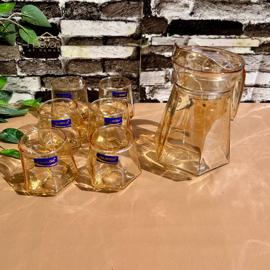 Delisoga® 7-Piece Golden-Accent Water Set – 340ml Clear Transparent Diamond-Shaped Glassware