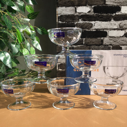 Delisoga® Set of 6 Ice Cream Bowls - Clear Glass Serving Bowls for Desserts