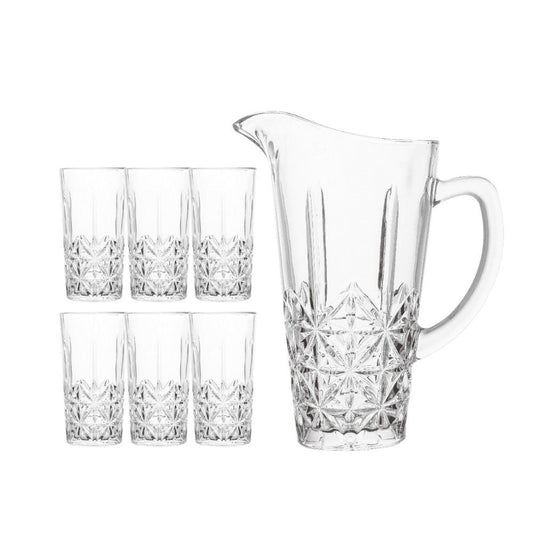 Delisoga® Premium 7-Piece Textured Glass Water and Serving Set 6 Glasses & 1 Jug