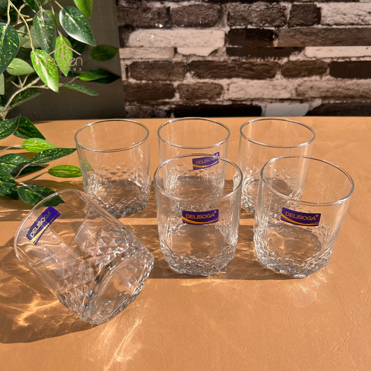 Delisoga® 6-Piece Diamond-Shaped Glass Water Set – 340 ml Clear Transparent Premium Glassware