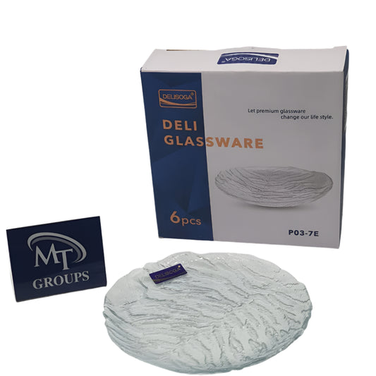 Delisoga® Set of 6 Clear Glass Dessert Plates – 6-Inch Transparent Quarter Plates for Cakes, Biscuits & Snacks
