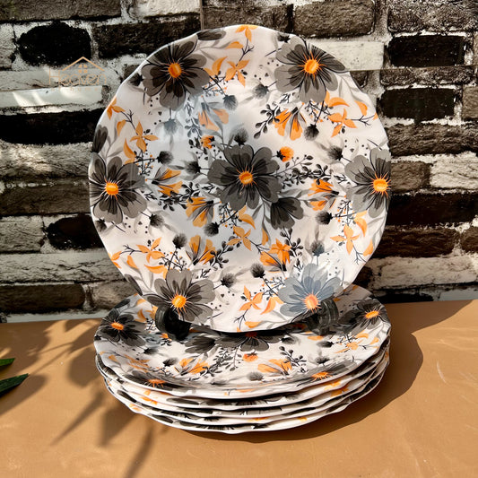 Set of 6 Melamine Plates Double-Glaze– Stain-Proof, Heavyweight, Durable Design Dinner Set Orange Blossom
