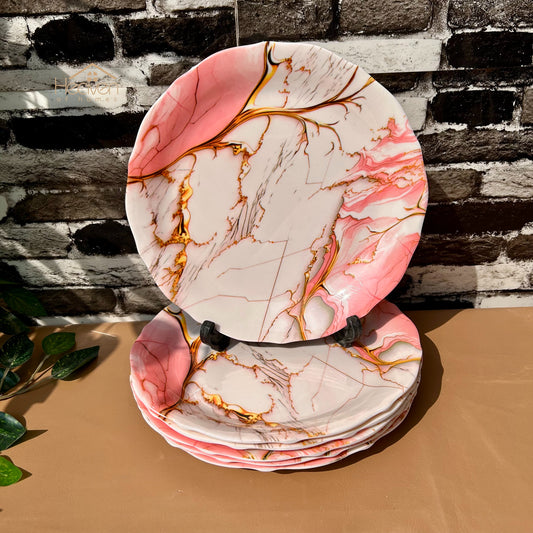 Set of 6 Melamine Plates Double-Glaze– Stain-Proof, Heavyweight, Durable Design Dinner Set Pink Sea