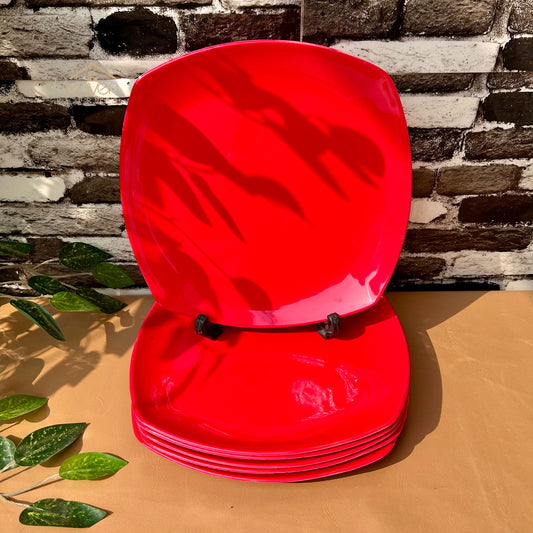 Set of 6 Melamine Plates Double-Glaze– Stain-Proof, Heavyweight, Durable Design Dinner Set Solid Red