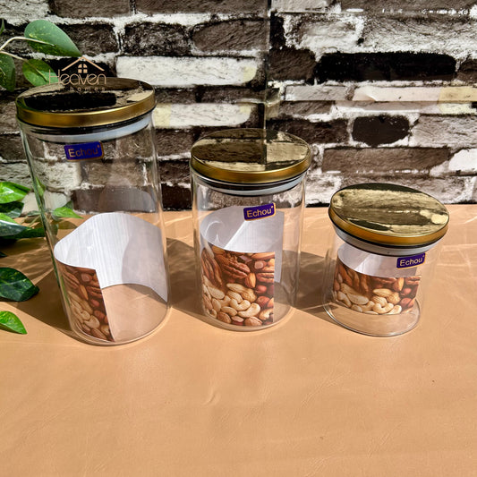 Heaven 3-Piece Glass Jar Set with Metallic Lids – Premium Glass Storage Containers