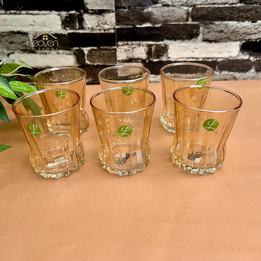 Limon Set of 6 Gold Drinking Glasses – Elegant Clear Glassware Set