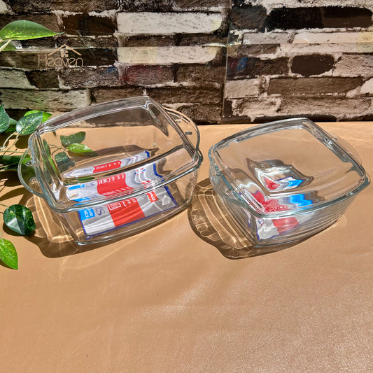 Heaven® Set of 2 Square Casserole with Glass Lid Baking Dish with Lid Glass Bowl 8 inches and 10 inches