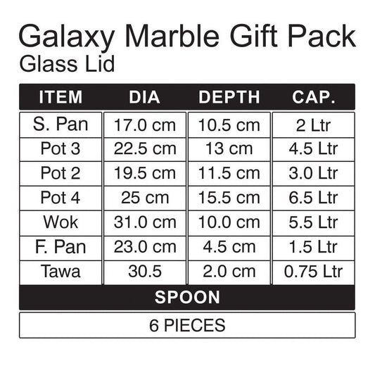 Sonex™ 18 Pieces Galaxy Marble Gift Pack Dual Layer Coating Non stick Set Gift Set with Glass Lids