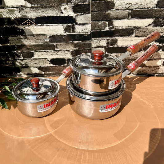 Heaven Heavy-Gauge Stainless Steel Sauce Pan with Wooden Handle