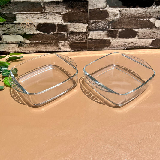 Set of 2 Royal Senobar Medium Square Baking Dish Clear Glass Serving Bowl Soup Bowl Pizza Baking Dish 7.5 Inches