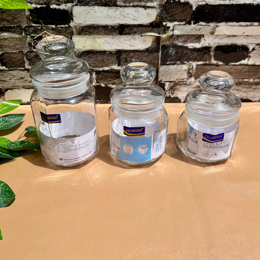 Delisoga® Set of 3 Glass Jar Set – Clear Glass Storage Containers for Kitchen & Pantry Organization