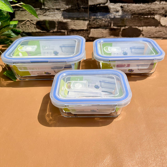 Deli® Imported set of 3 Clear Glass Bowls with Airtight Lids – Food Storage Containers - 350ml/680ml/1ltr