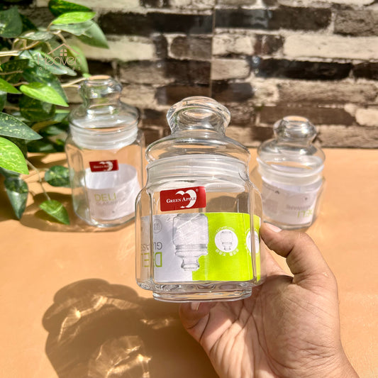 Deli® Imported Set of 3 Glass Jar Set - 400ml/430ml/725ml – Clear Glass Storage Containers for Kitchen & Pantry Organization