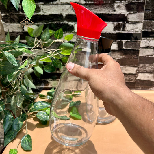 Heaven® Modern Glass Pitcher – Stylish Carafe with Lid Set of 2 Bottles Red & Black