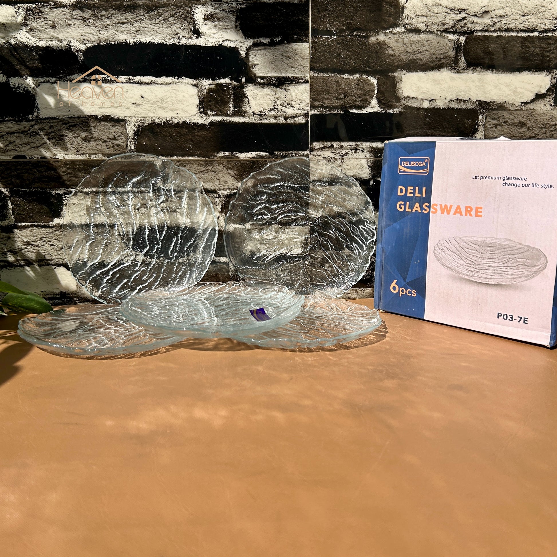 Delisoga® Set of 6 Clear Glass Quarter Plates – Elegant & Durable - PO3-7E