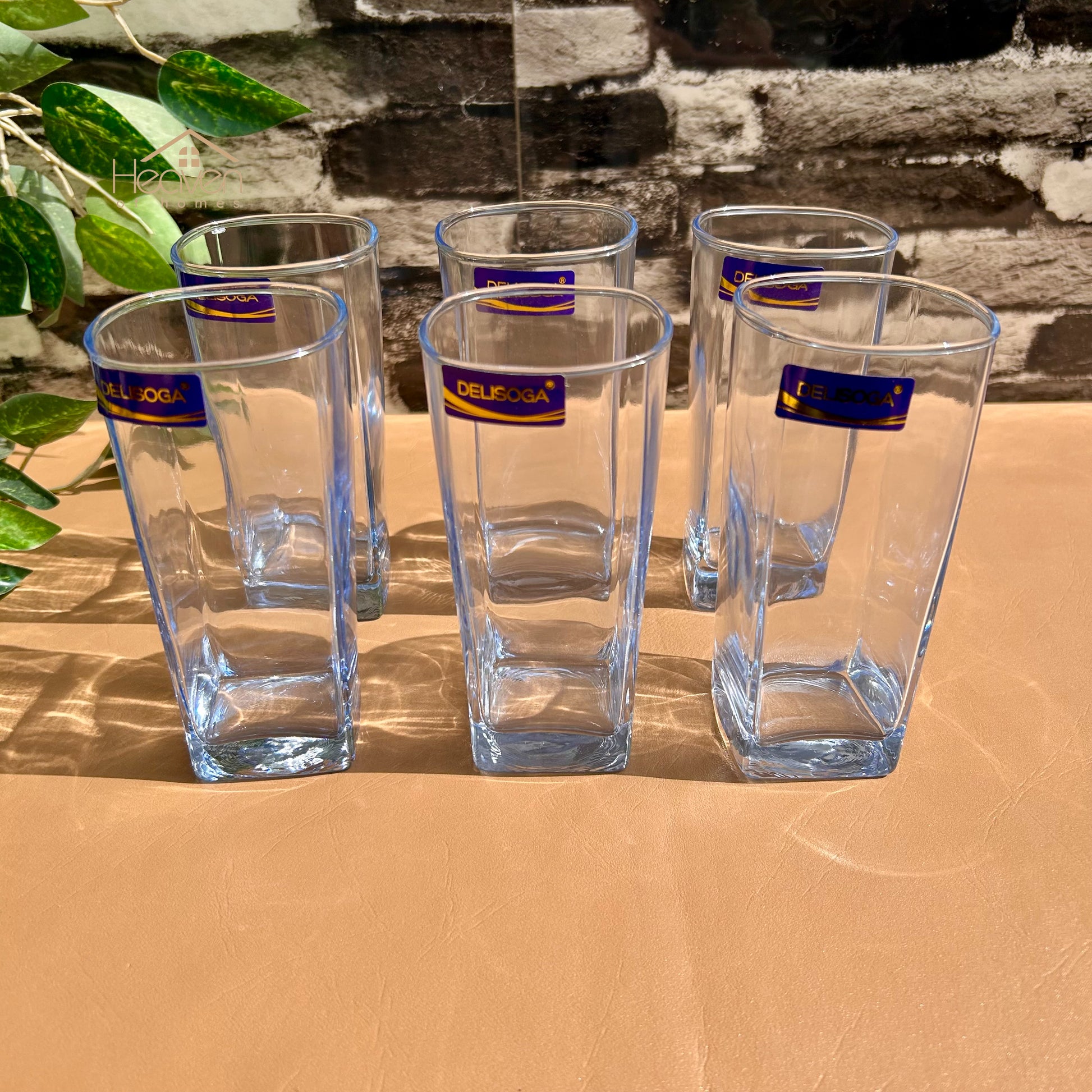 Delisoga® Elegant Blue Classic Glass Tumbler Set – 6-Piece Long 365ml Drinking Glasses Cocktail Blue