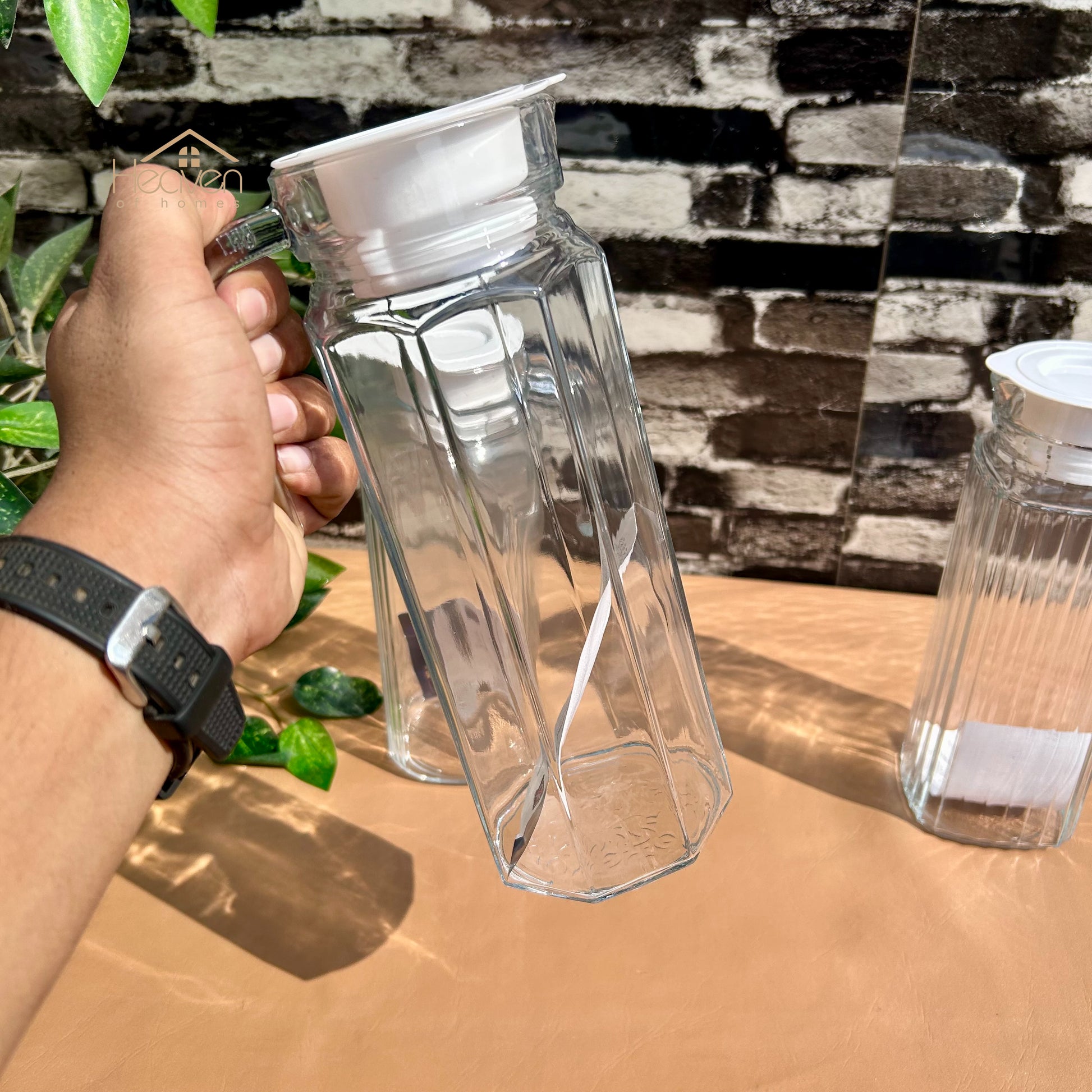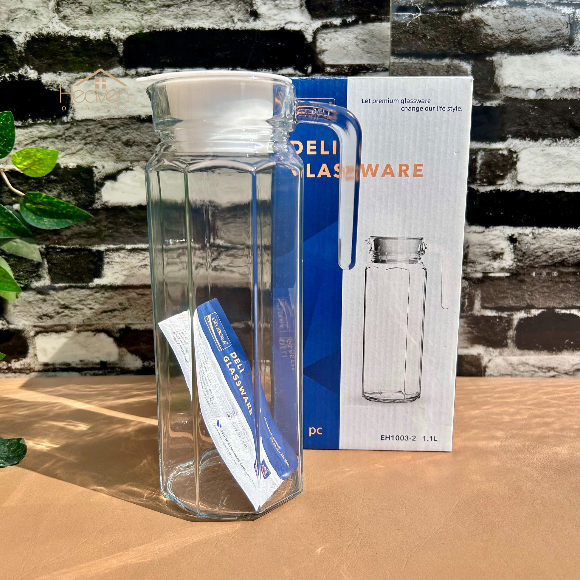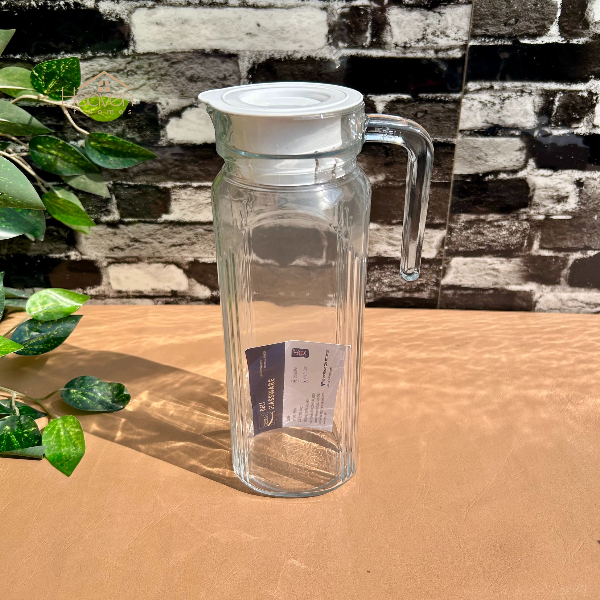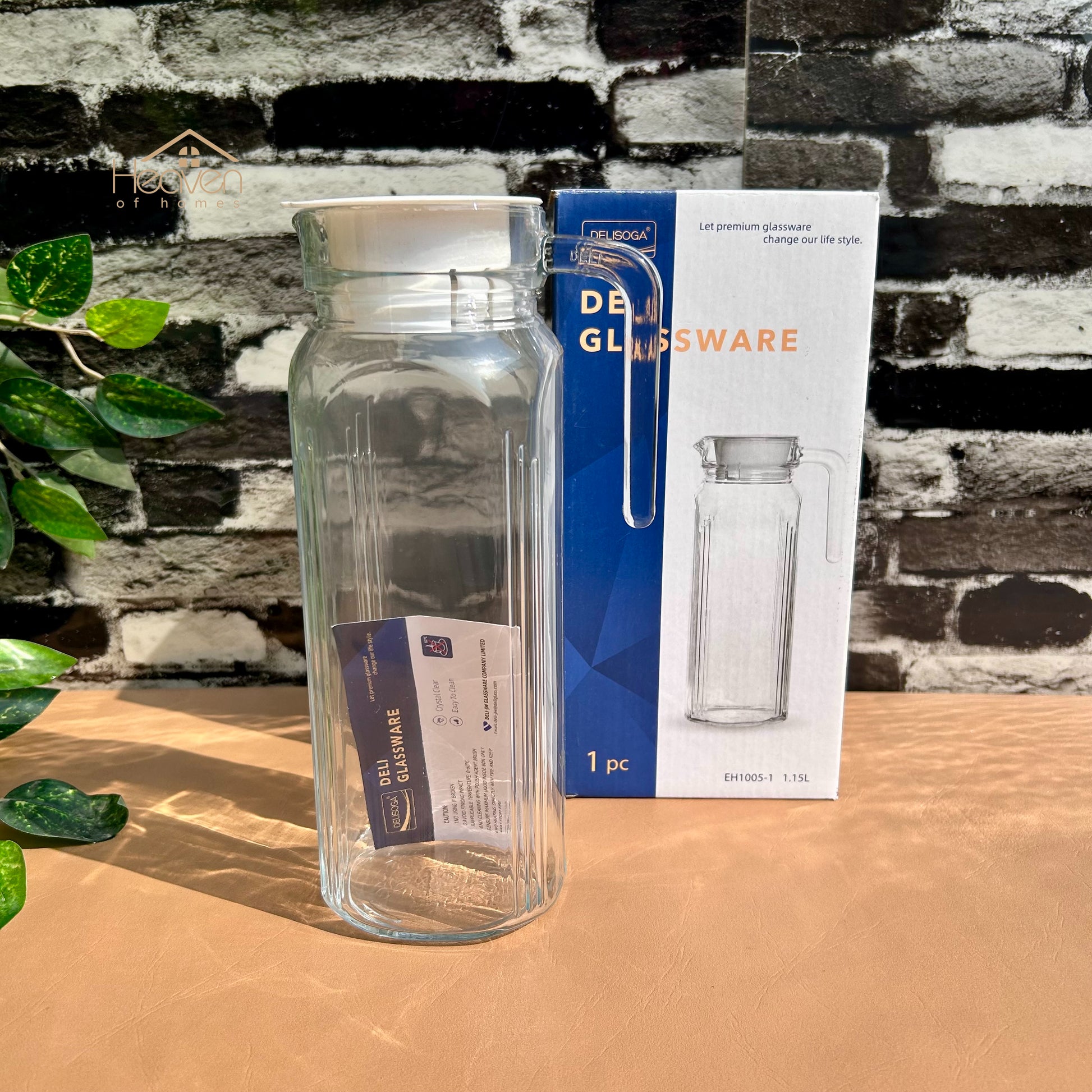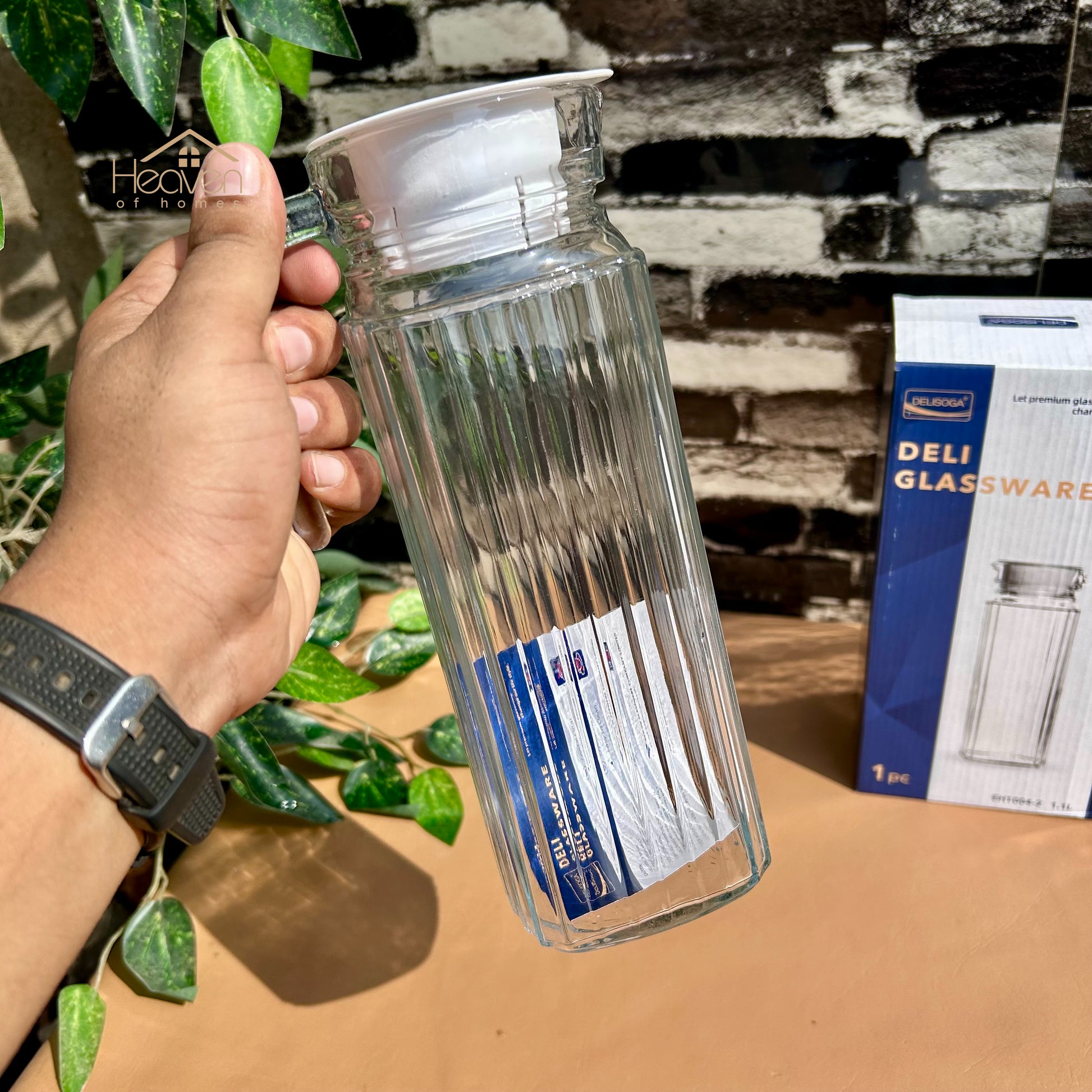 Delisoga® 1.1-Litre Clear Glass Oil Jug with Lid - Durable & Stylish Storage Solution
