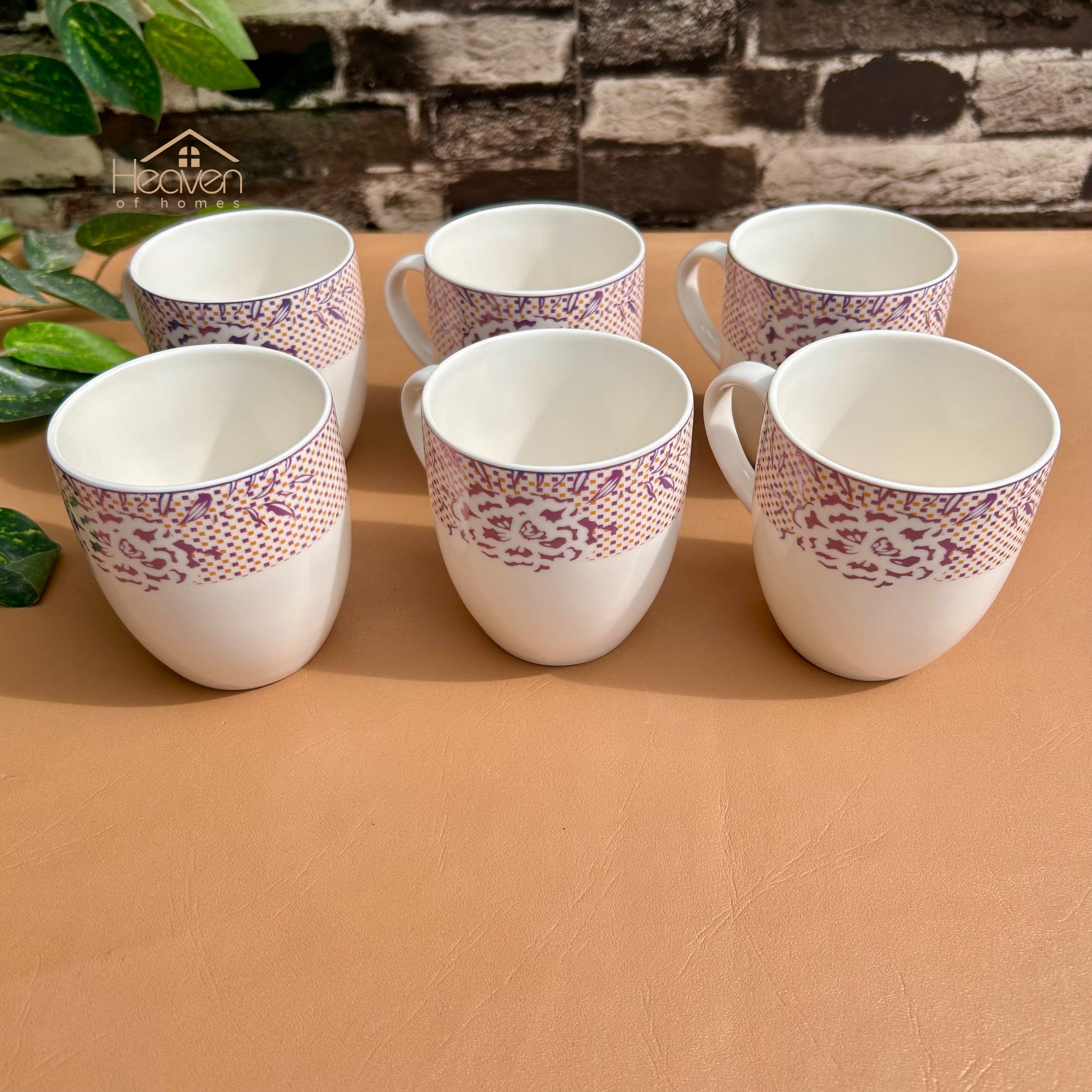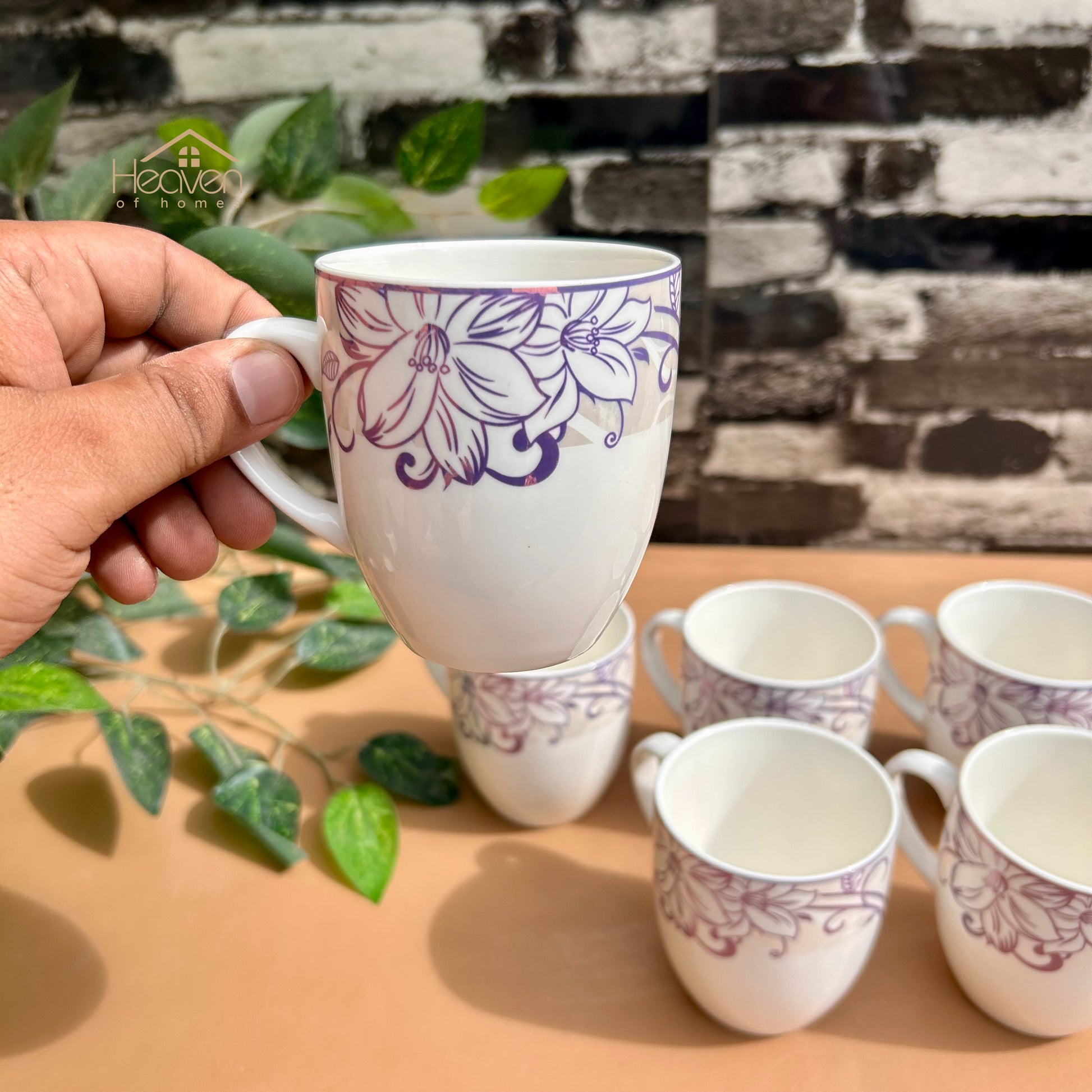 Heaven® Set of 6 Designer Printed Bone China Tea & Coffee Cups – 205 ml Lightweight & Elegant