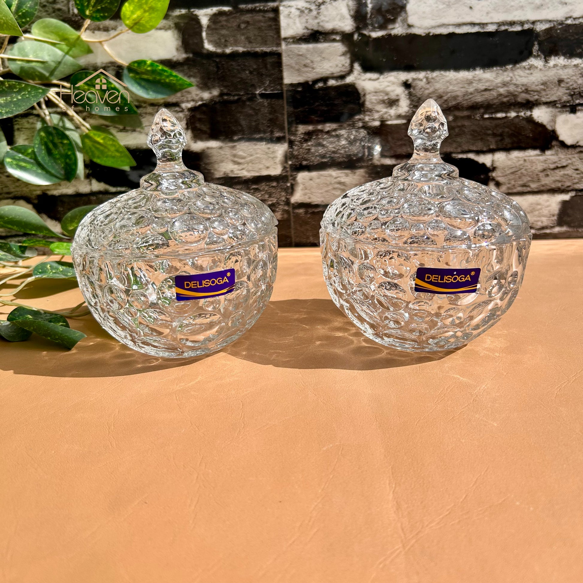 Delisoga Set of 2 Clear Glass Candy Bowls with Lids – Transparent Glassware for Sweets & Treats