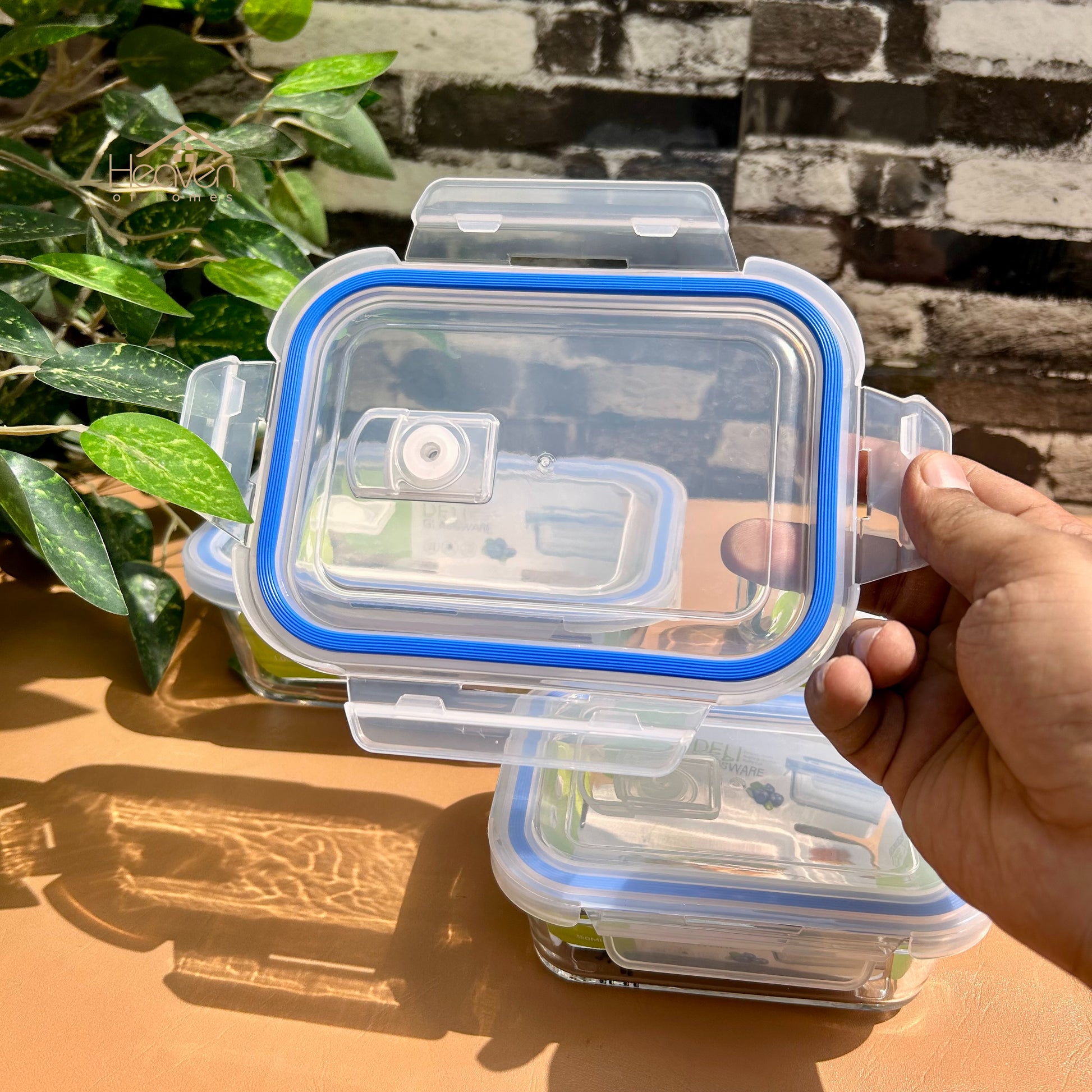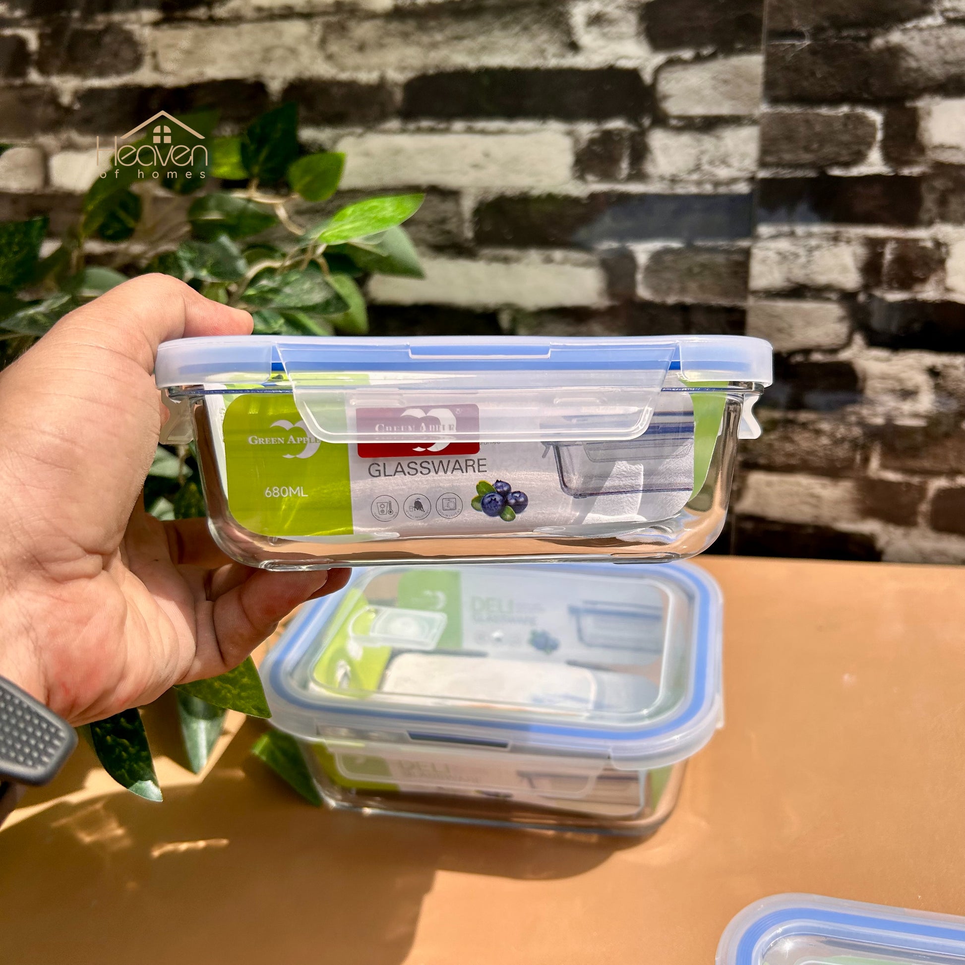 Deli® Imported set of 3 Clear Glass Bowls with Airtight Lids – Food Storage Containers - 350ml/680ml/1ltr