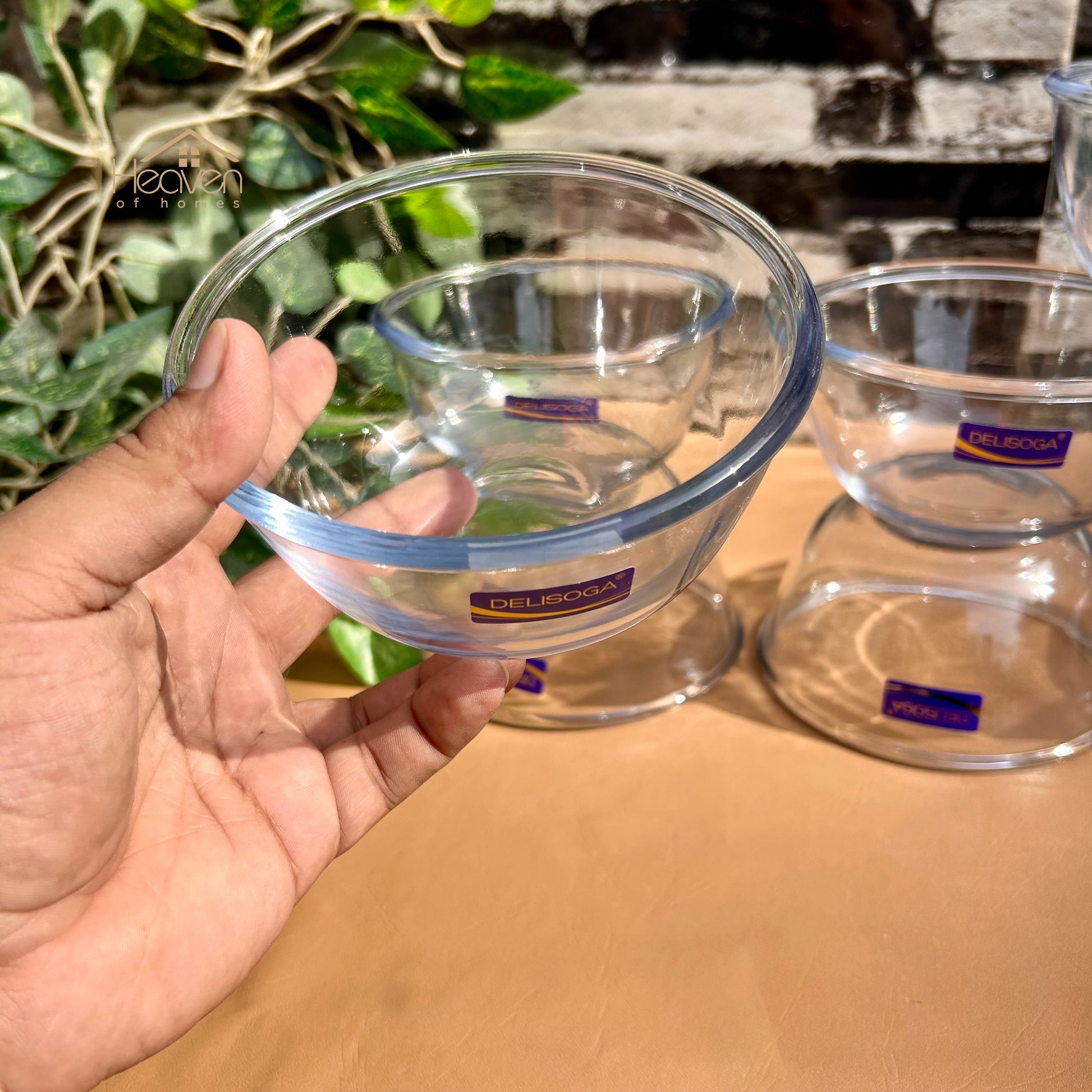 Set of 6 Soup Bowls Clear Glass Microve Safe Bowls 5 Inches Plain